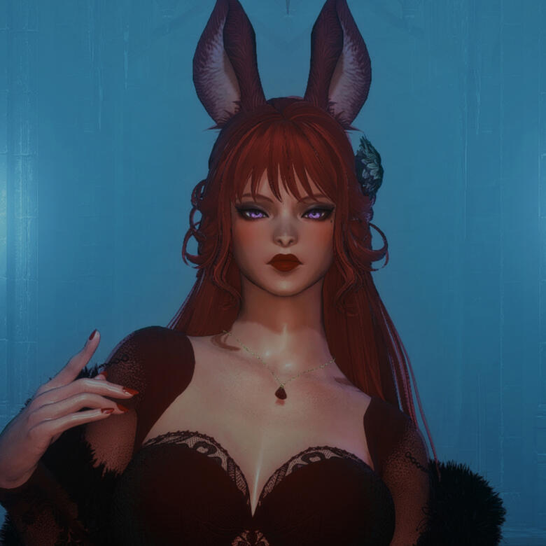 Much like the lavender blooms that make her signature perfume, the woman’s bright violet eyes are keen to indulge as are her long slender ears, both of which are apt to roam and dither for any fleeting fancy that might command the woman’s focus. All the delicate wrappings in the worldcan’t hidethe woman’s predatory nature, and certainly not when she’s apt to share a passing smile as those long, slender fangs often make othersthink twice on whether her bark is worse than her bite.