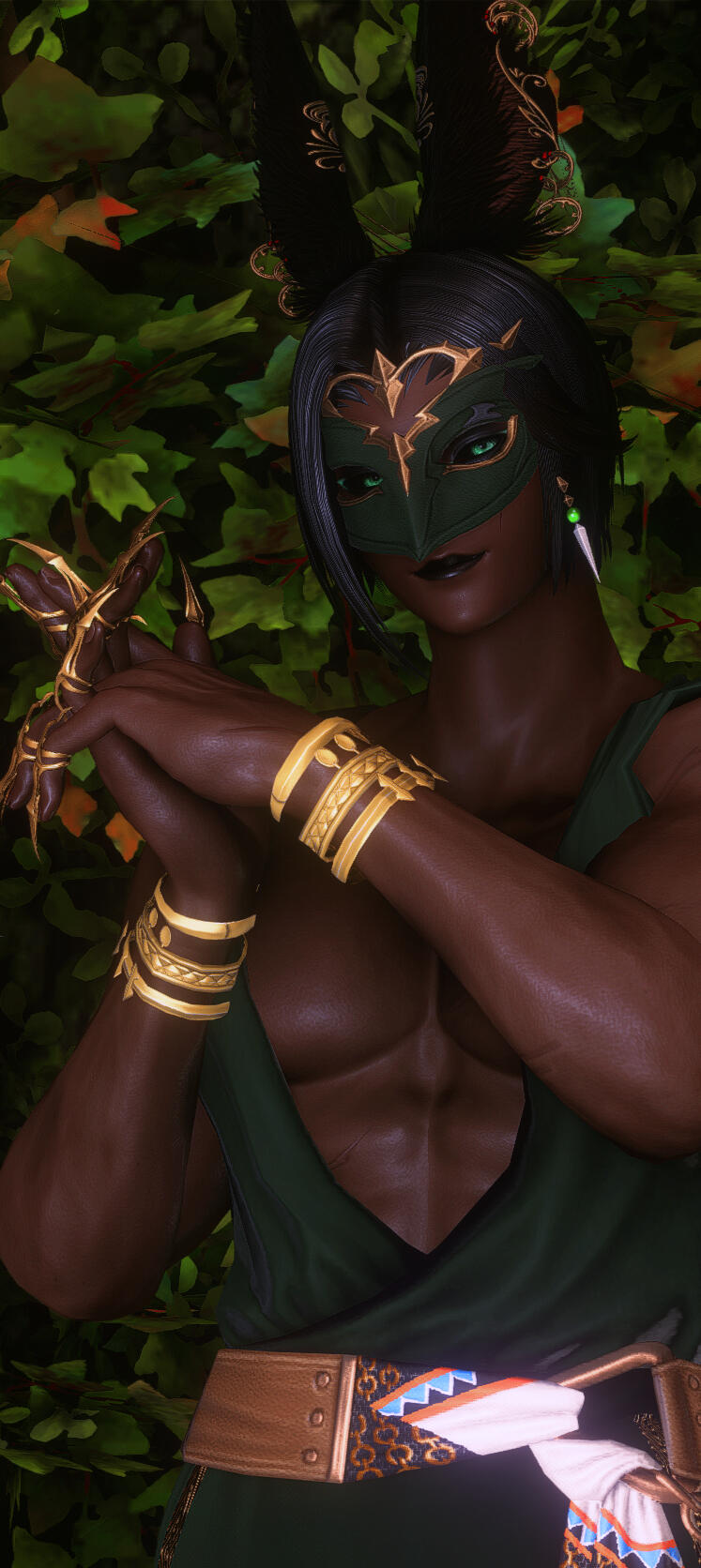 At first impression: The aroma of lavender wafts lovingly beneath your nostrils on her approach, a tall, curvaceous frame boasts fine linens atopsun-kissedskin and the exquisite cut of suchlavish fabricsare sure to leave little to the mind's eye for the shape the rava possesses. The rava elects to drape herself in bright red hues and pairs them frequently with gold and black adornments to properly see her skin shine in any light.
